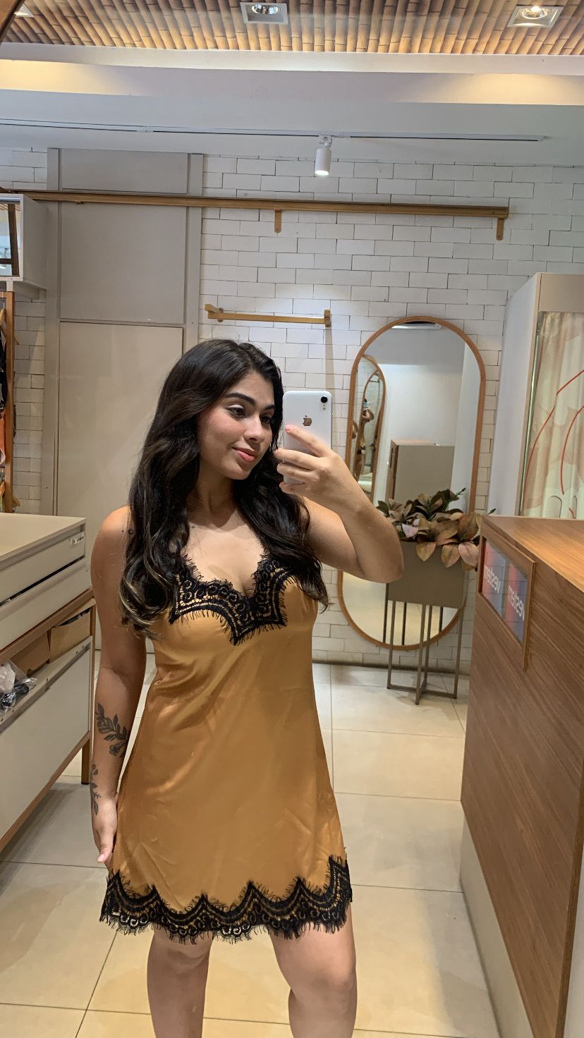 TAMANHOS: G e GGCOR: Caramelo com renda pretaMODELO: Curta com alças finas DESIGNA CAMISOLA BELLES combina conforto e sofisticação em...