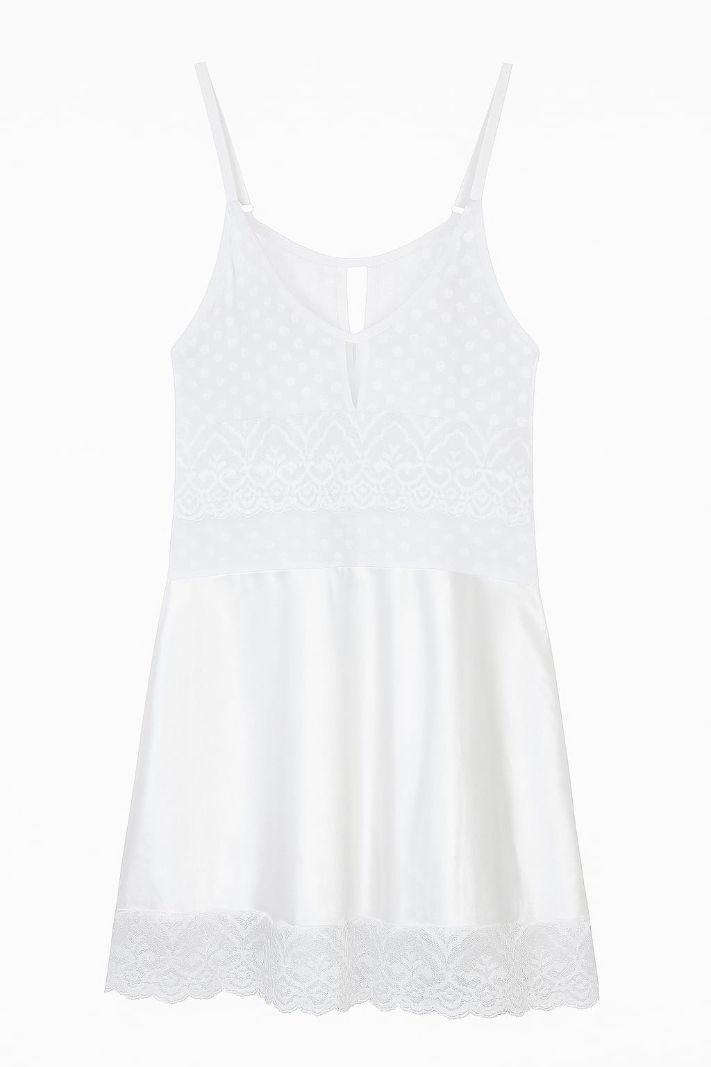 TAMANHOS DISPONÍVEIS: M, GGCOR: Branco suaveMODELO: Camisola com tule poá, renda e caimento leve DESIGNA CAMISOLA GAROTA VENENO combina romantismo,...
