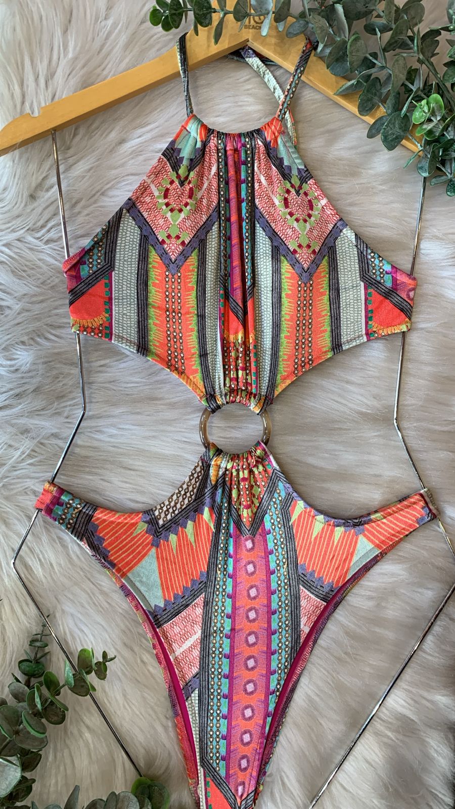 TAMANHO: PMODELO: Maiô com decote halter e recorte central com argola DESIGNO MAIÔ BELLES traz um design marcante e cheio...