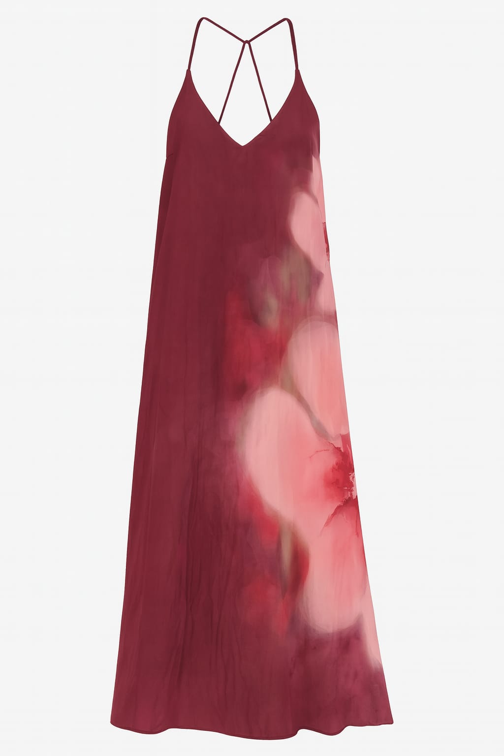 Saída LIVE Vestido Longo Vinho Degradê Rosa | Fluidez E Delicadeza